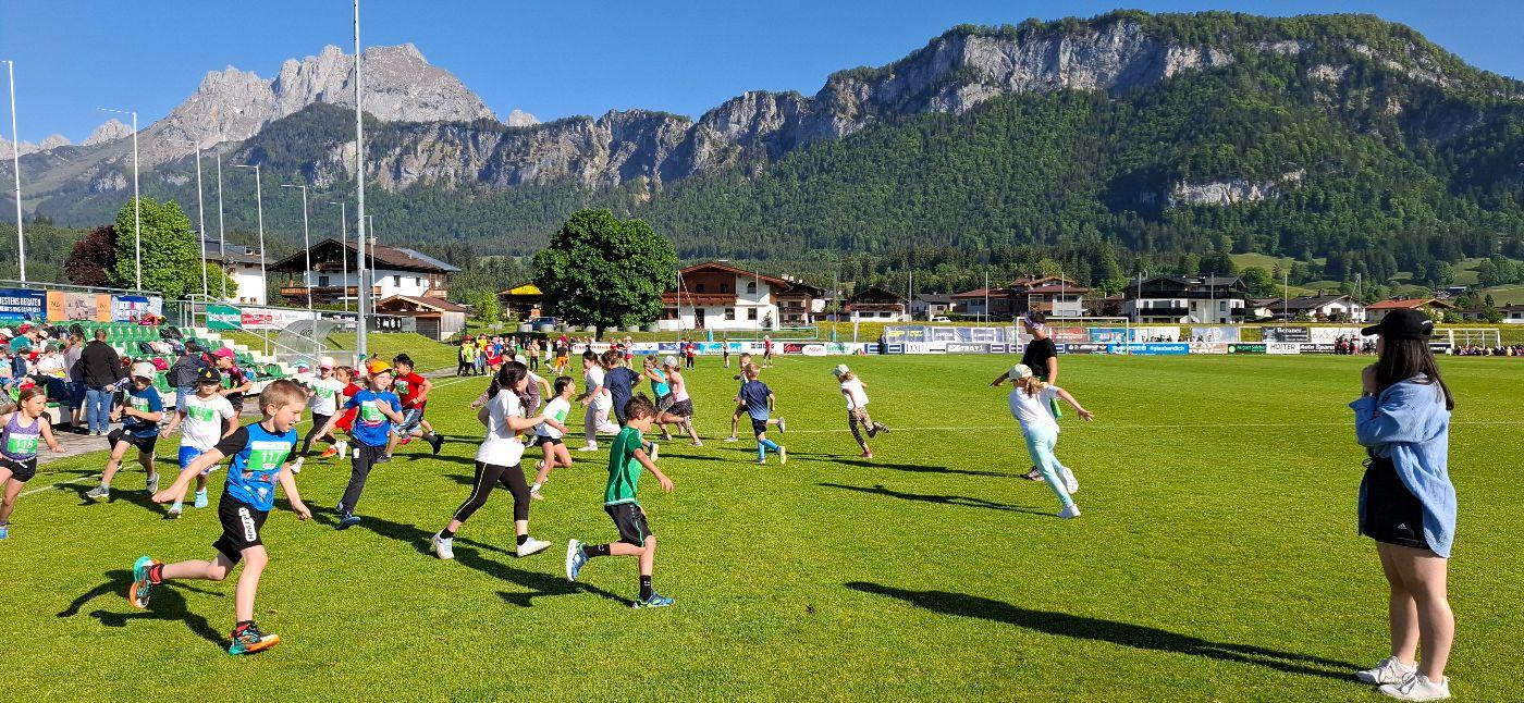 Die traumhafte Kulisse des Koasastadions – eingerahmt vom imposanten Wilden Kaiser – trug zur besonderen Atmosphäre dieser Veranstaltung bei. Unter der lautstarken Anfeuerung von Lehrer:innen, Eltern und Mitschüler:innen gaben alle ihr Bestes und zeigten, wie viel Freude Bewegung machen kann.